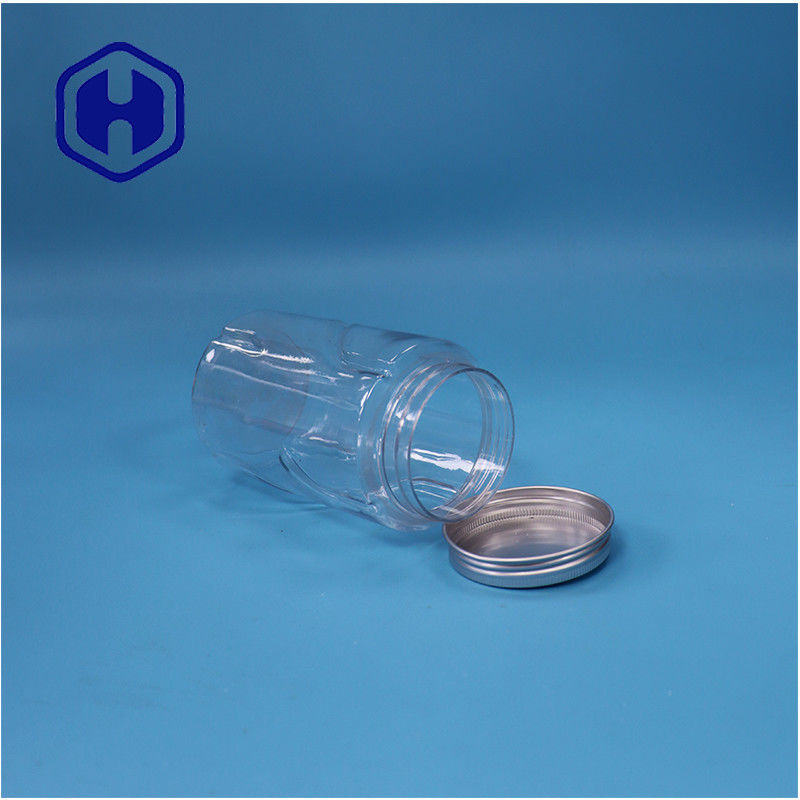 ใสกลม พลาสติก PET แมนตี้ แคนดี้ น้ําตาล อาหารเกรด Jar อลูมิเนียม หมวกบน