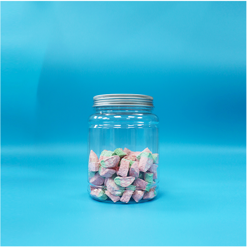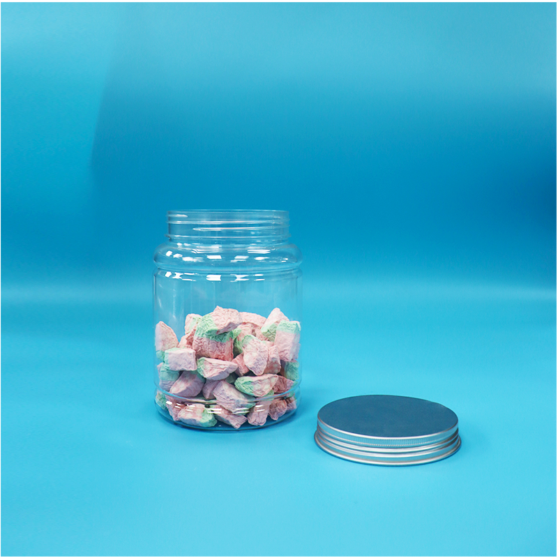 กระปุกพลาสติกใสฝาเกลียวบนอลูมิเนียมสำหรับใส่ผลไม้ เยลลี่ อมยิ้ม หมากฝรั่ง