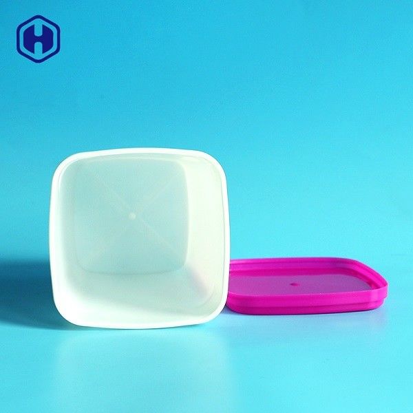 690ML ภาชนะพลาสติกเกรดอาหาร 23OZ ถังสี่เหลี่ยมสีขาว PP ฝาปิดกล่อง