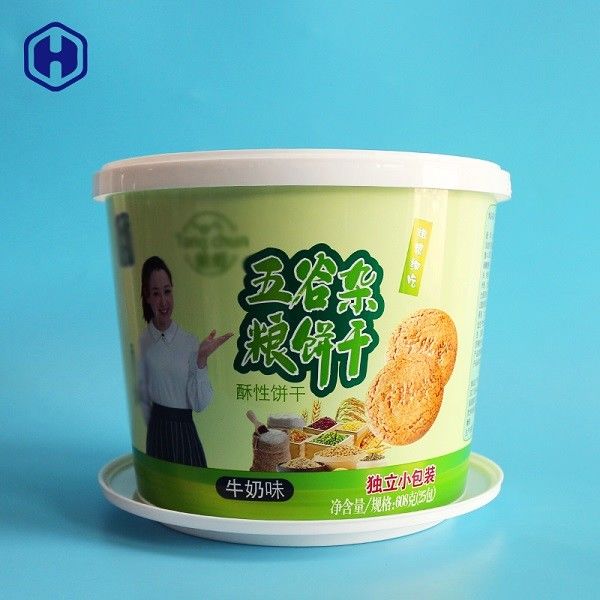 คุกกี้แห้ง IML ถังบรรจุช็อคโกแลตบิสกิตภาชนะพลาสติกเปล่า PP บรรจุภัณฑ์