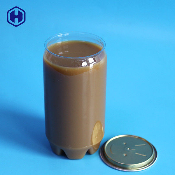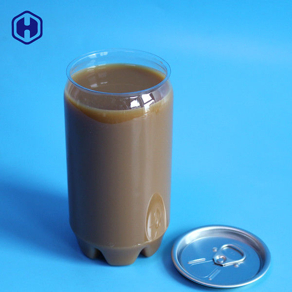 กระป๋องเครื่องดื่มพลาสติก 12.5OZ 375ML ขวดโซดาใสพร้อมฝาปิดแพ็คเกจเครื่องดื่มเย็น