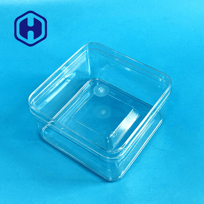 ขนาดเล็ก 350ml สี่เหลี่ยม PET ใสขนมขนมอาหารเกรดบรรจุภัณฑ์อาหารกล่องแสดงพลาสติก