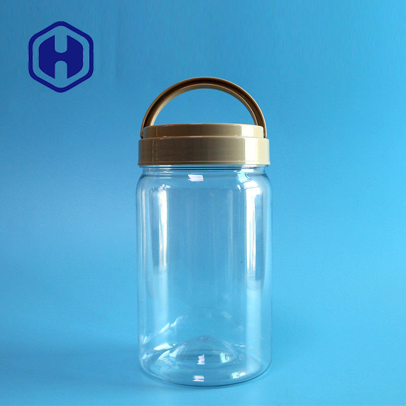 850ml กระบอกใสรอบขวดพลาสติก PET ตรงพร้อมฝาปิดและที่จับ