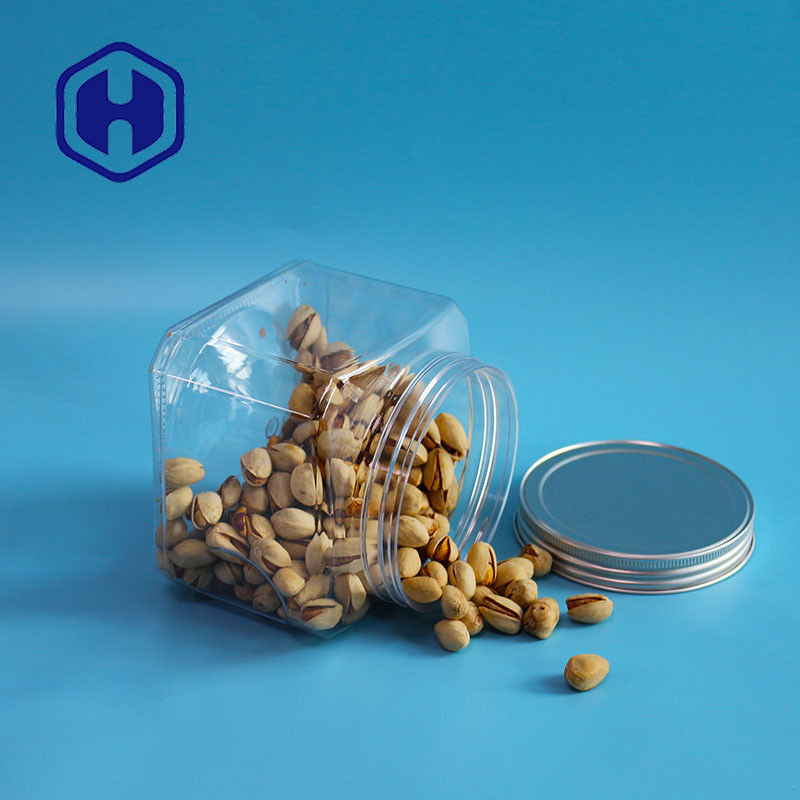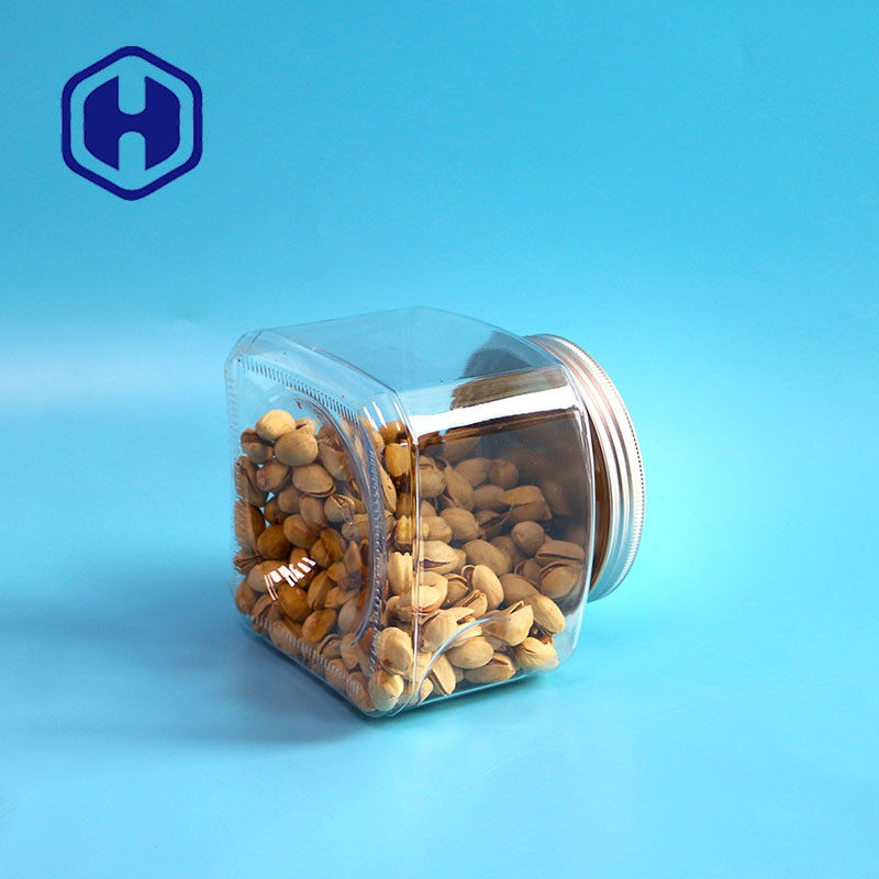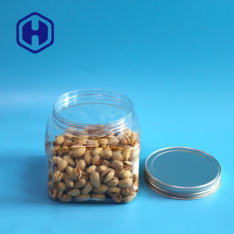 Bpa Free Storage 1000ml ด้ามจับสั้นพลาสติก PET Food Square Jar พร้อมฝาปิดอลูมิเนียม