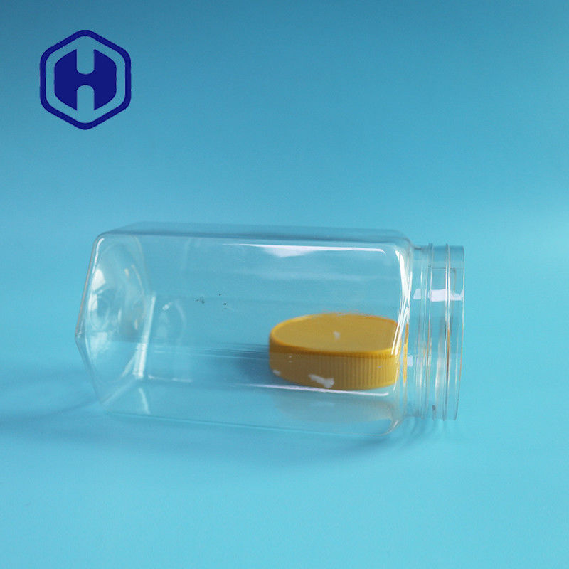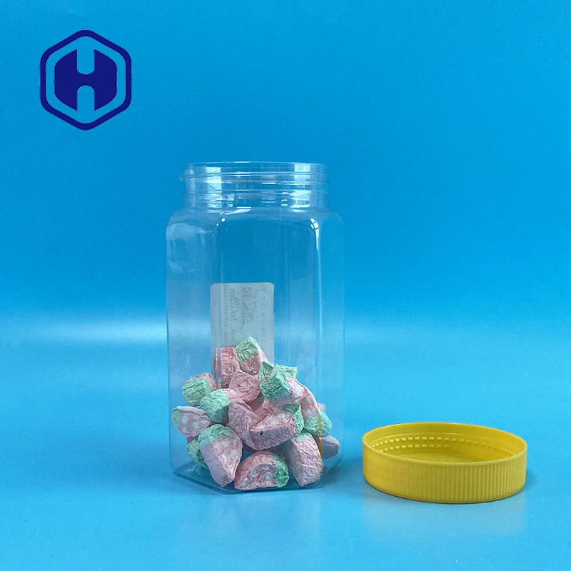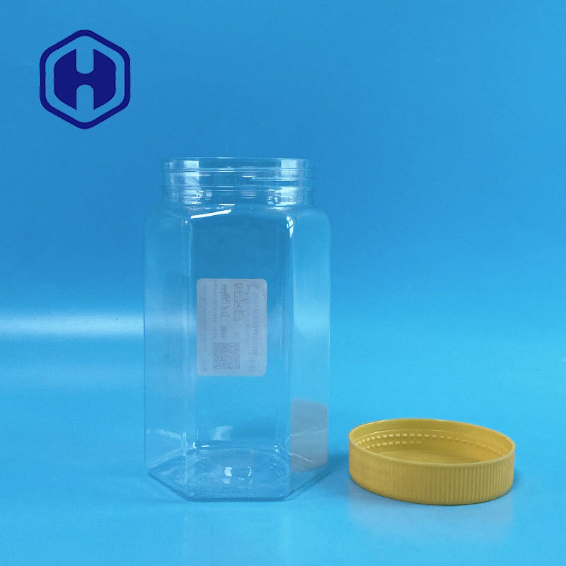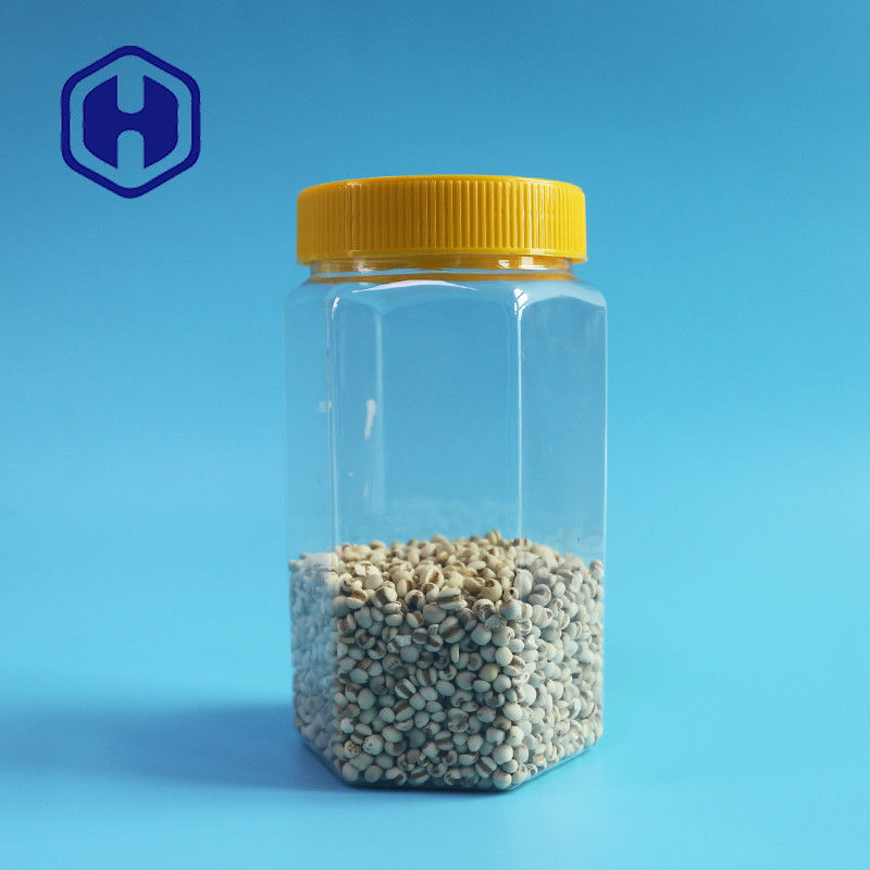 จำนวนมาก 670ml ใสหกเหลี่ยมปากกว้างขวดพลาสติก PET บรรจุภัณฑ์อาหารที่มีฝาปิด