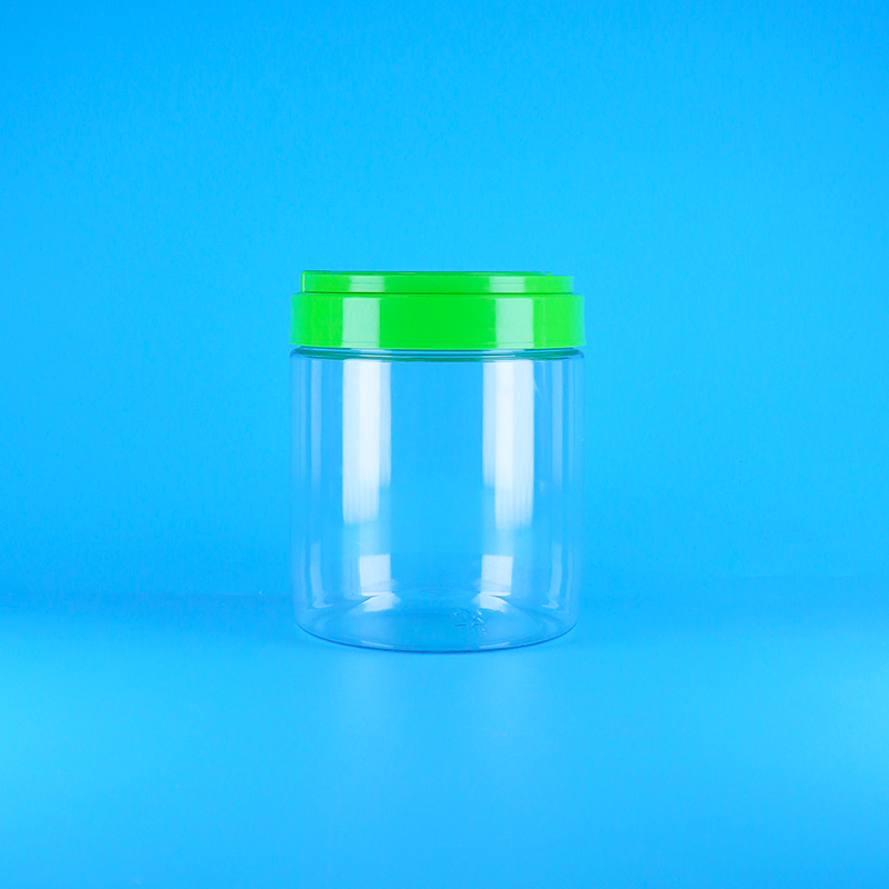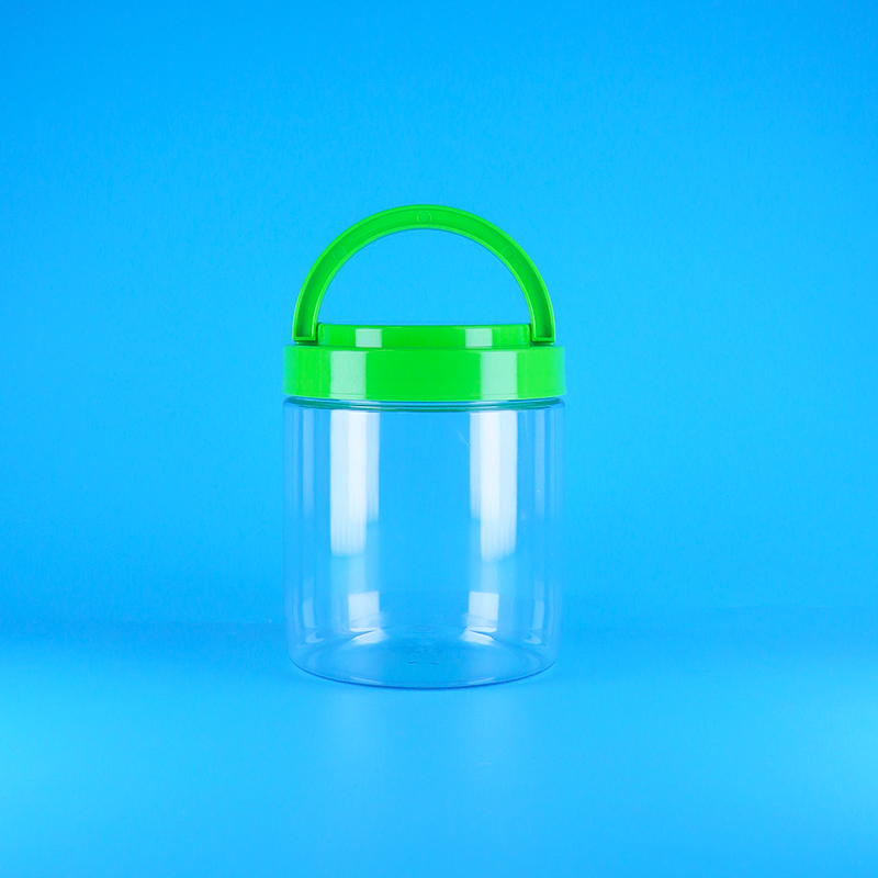 ขวดพลาสติก PET ใสทรงกลมสำหรับอาหาร ปิดผนึกได้ พร้อมฝาเกลียวและหูจับสำหรับเนยถั่ว