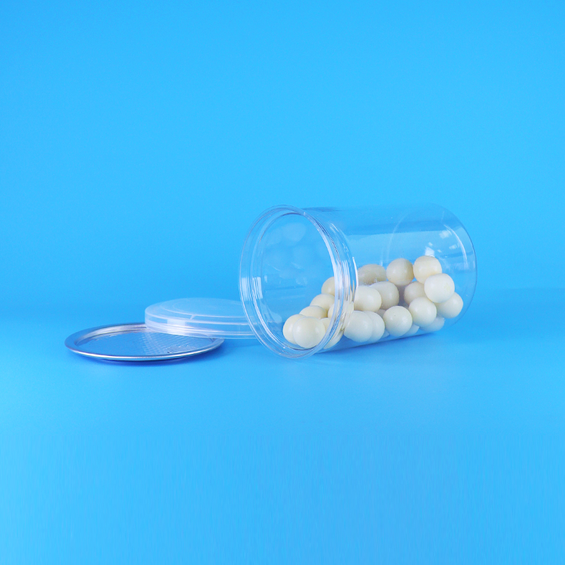 กระปุกขนมพลาสติก PET ใสทรงกลม โยเกิร์ต คุกกี้ กระป๋อง ฝา PE เกรดอาหาร